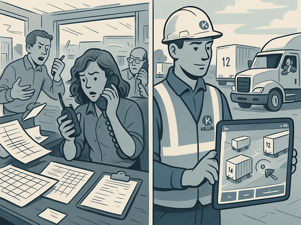 For years, Keller’s dedicated and yard operations teams managed complex sites for customers—balancing trailers, docks, and driver moves daily. We noticed a pattern: every yard had its own system, and most were painfully manual.